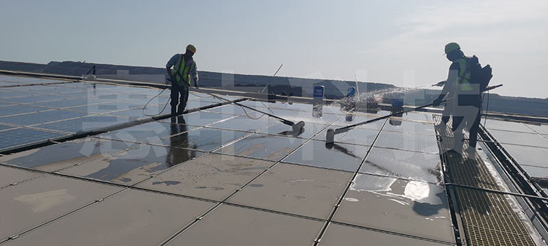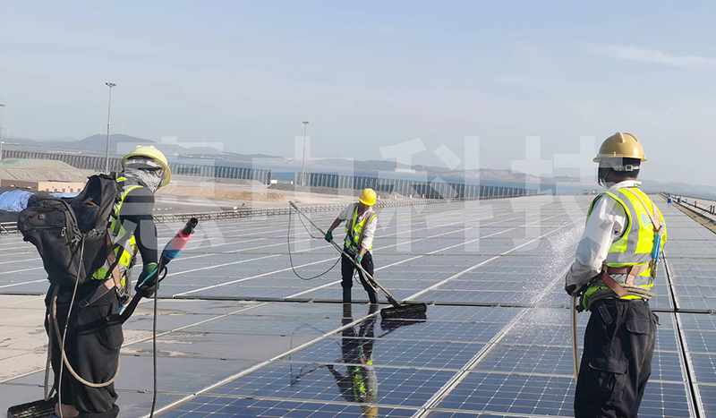 再通过专业光伏清洗设备将组件表面彻底清洗干净。