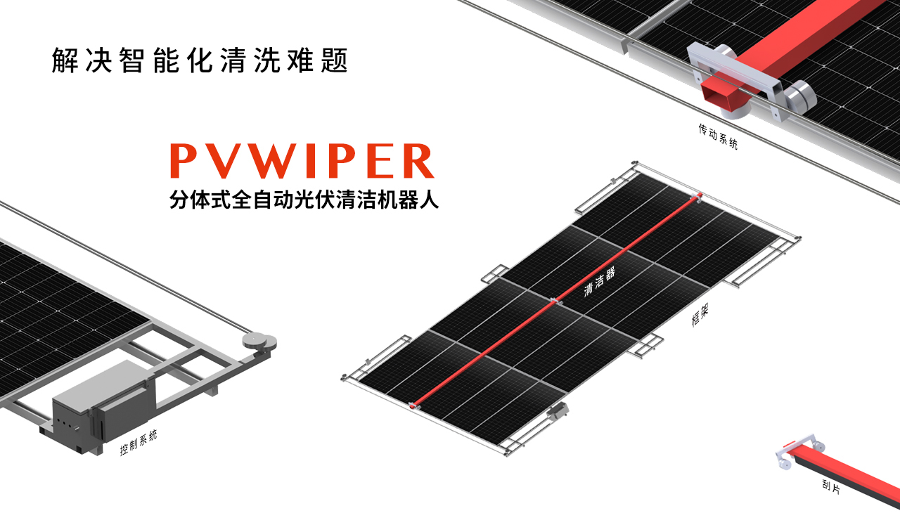 经过不断地优化设计,惠中科技研发了具有自主知识产权的分体式全自动光伏清洗机器人PVWIPER。