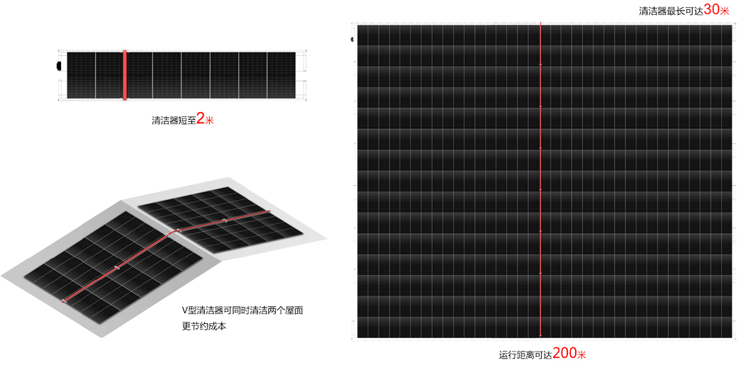 PVWIPER可根据组件排布灵活定制框架结构和清洁器长度,更加贴合中国光伏电站实际情况。